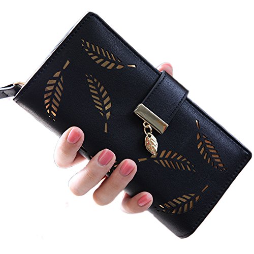 Damen Elegant Süß Leder Geldbörse ACGE® Pu neuer Stil Damen Lang Geldbörse (Schwarz)