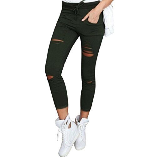 Rosennie Damen Dünn Ripped Hoch Taille Strecken Bleistift Hose (S, Armee Grün)